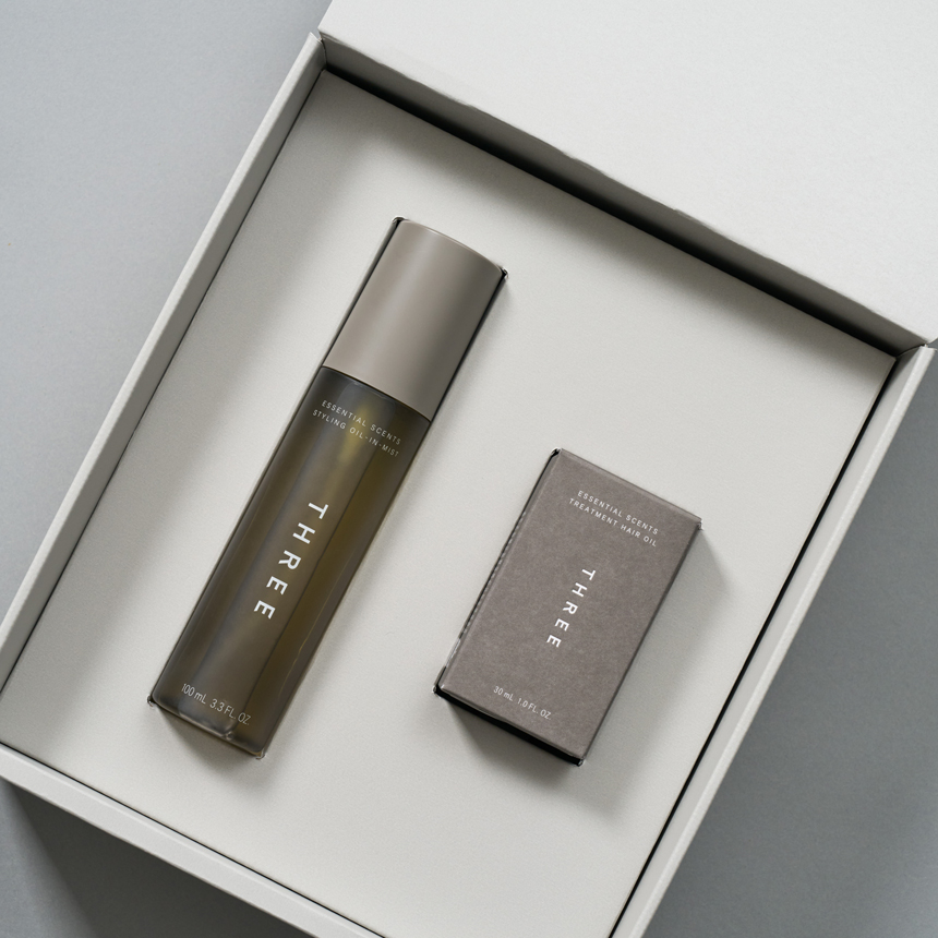 THREEのエッセンシャルセンツ シリーズ ギフトセットは、精油の芳香に包まれながら、心身を浄化するようなひとときを贈れるセットです。