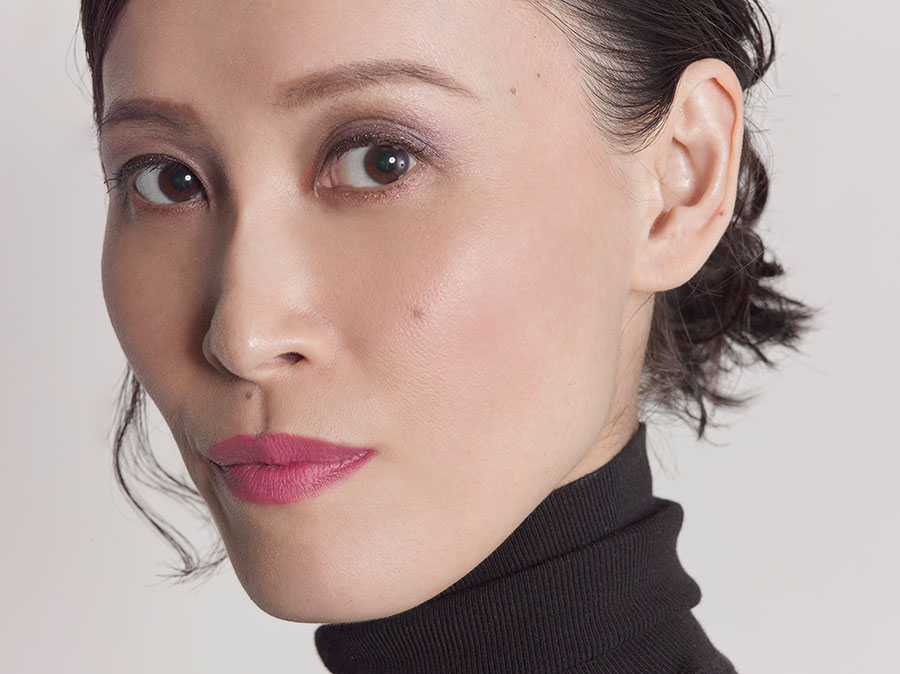 うすい光をまとったようなパープルのアイグロスと、眩い輝きがシックに点滅するゴールデンブラウンのアイライナー。その境目をあえて少しスマッジさせて、2色の繊細なグラデーションを描いたミスティークなアイメイクに仕上がりました。