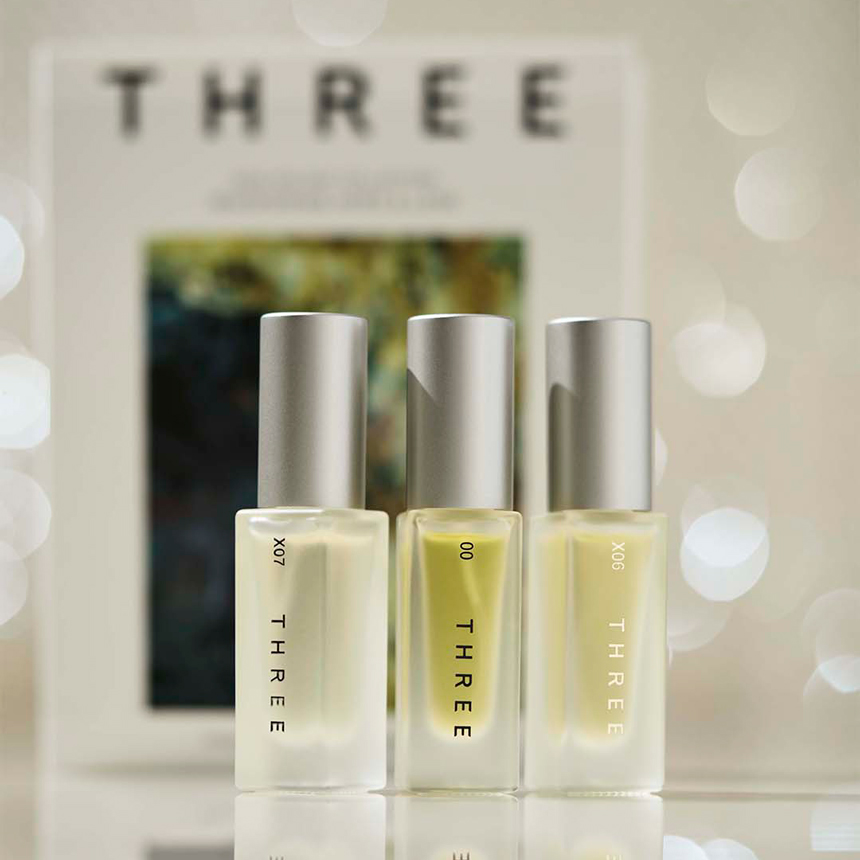 THREEの精油フレグランス「エッセンシャルセンツ R」から、3つの香りが楽しめる初のディスカバリーキット。どれもリナロール約2倍のTHREEオリジナル ゼラニウム油を共通配合し、100%精油の香りで創香しました。