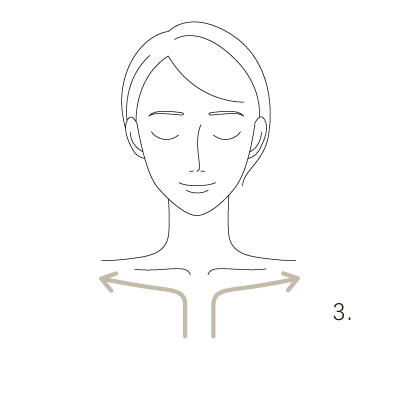 - 3. 巡りスイッチ胸の中央から鎖骨下に向かって、片側ずつ流すように洗います。